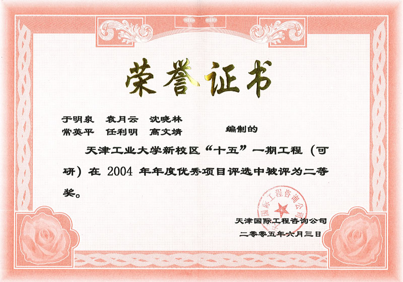 2004年 | 公司系統優(yōu)秀項目評選二等獎 | 天津工業(yè)大學(xué)新校區“十五”一期工程(可研) |