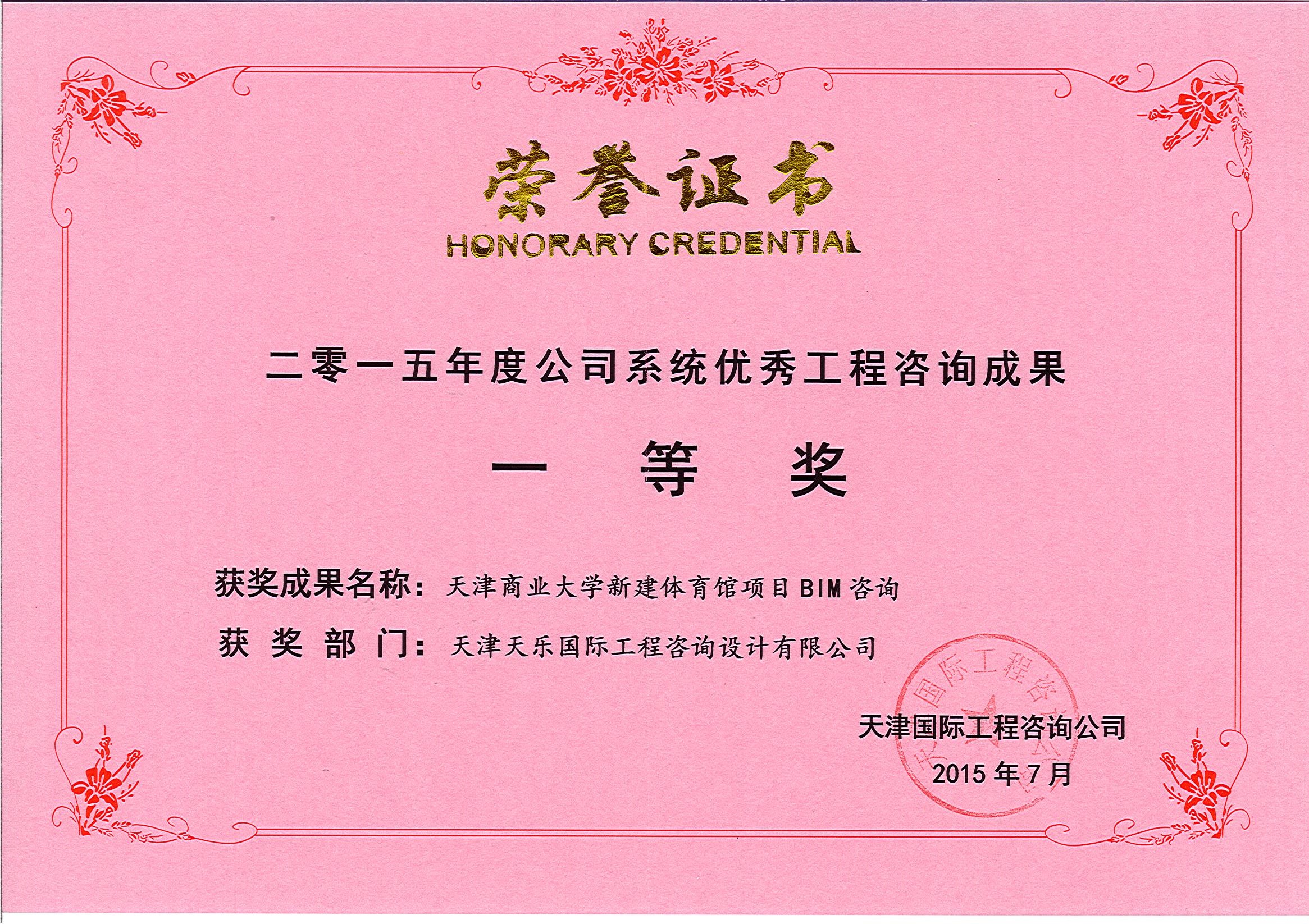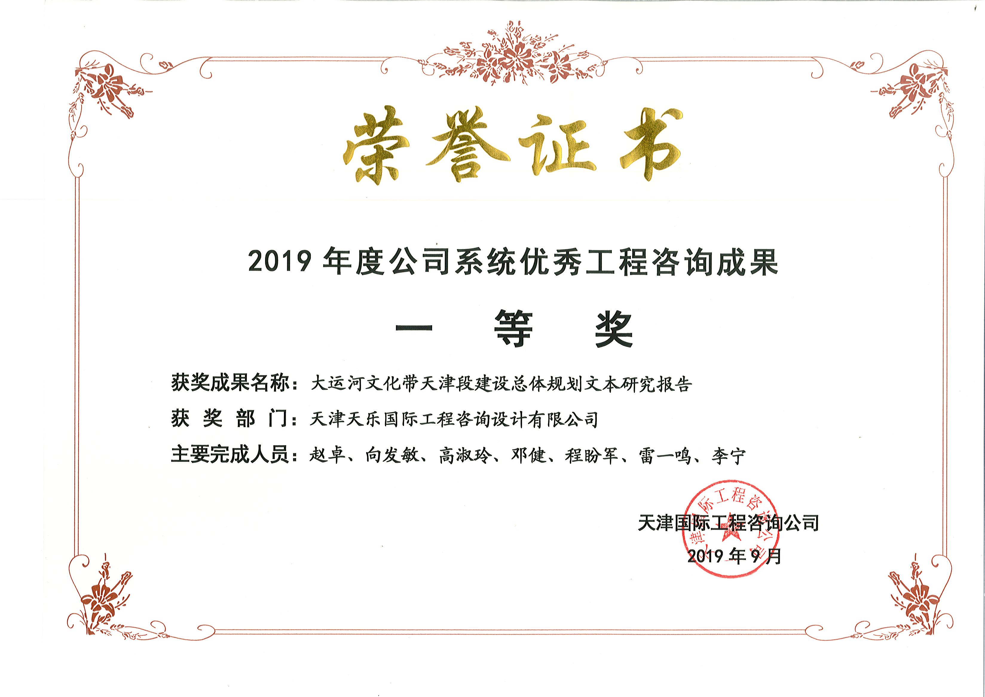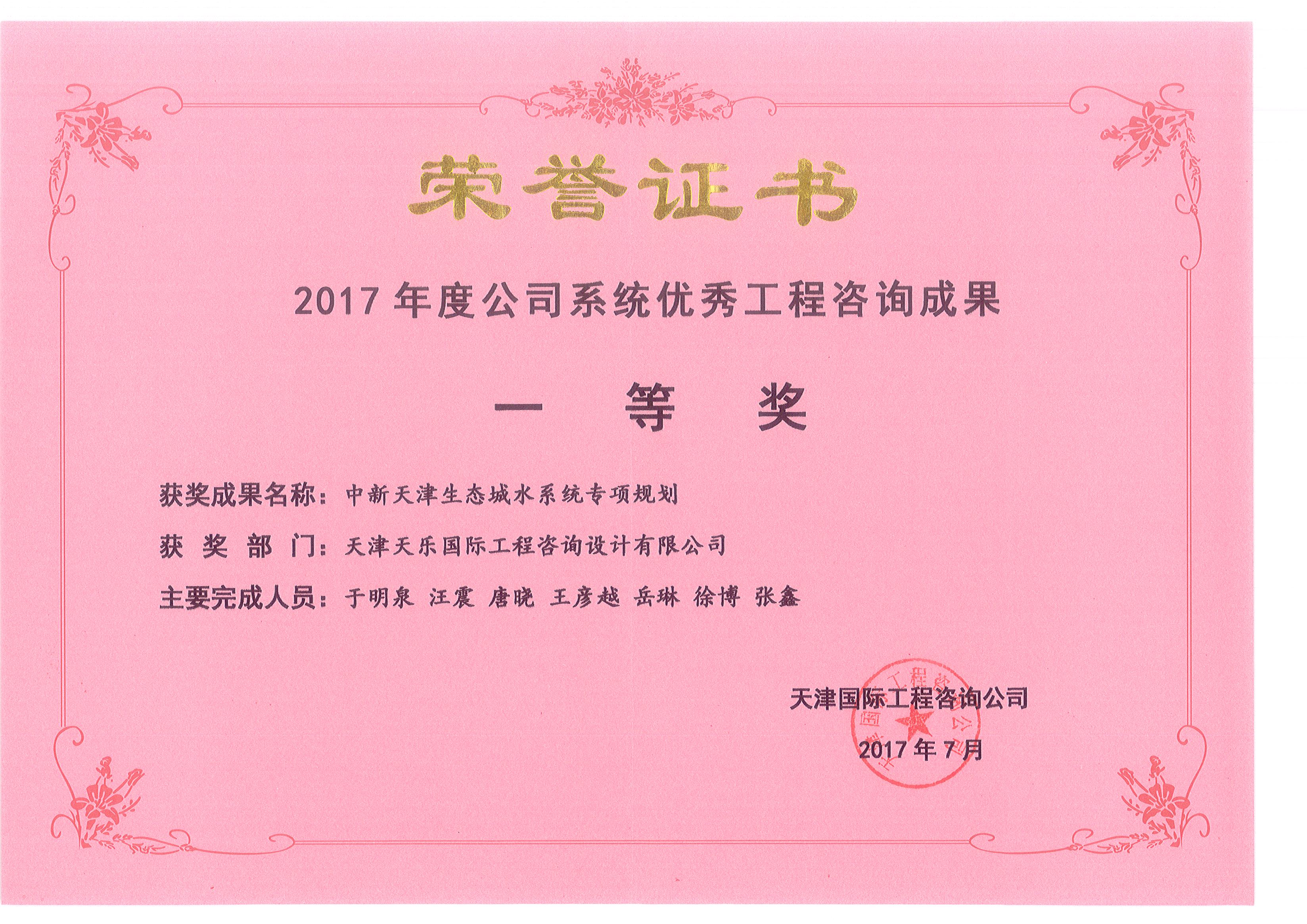| 公司系統優(yōu)秀工程咨詢(xún)成果一等獎