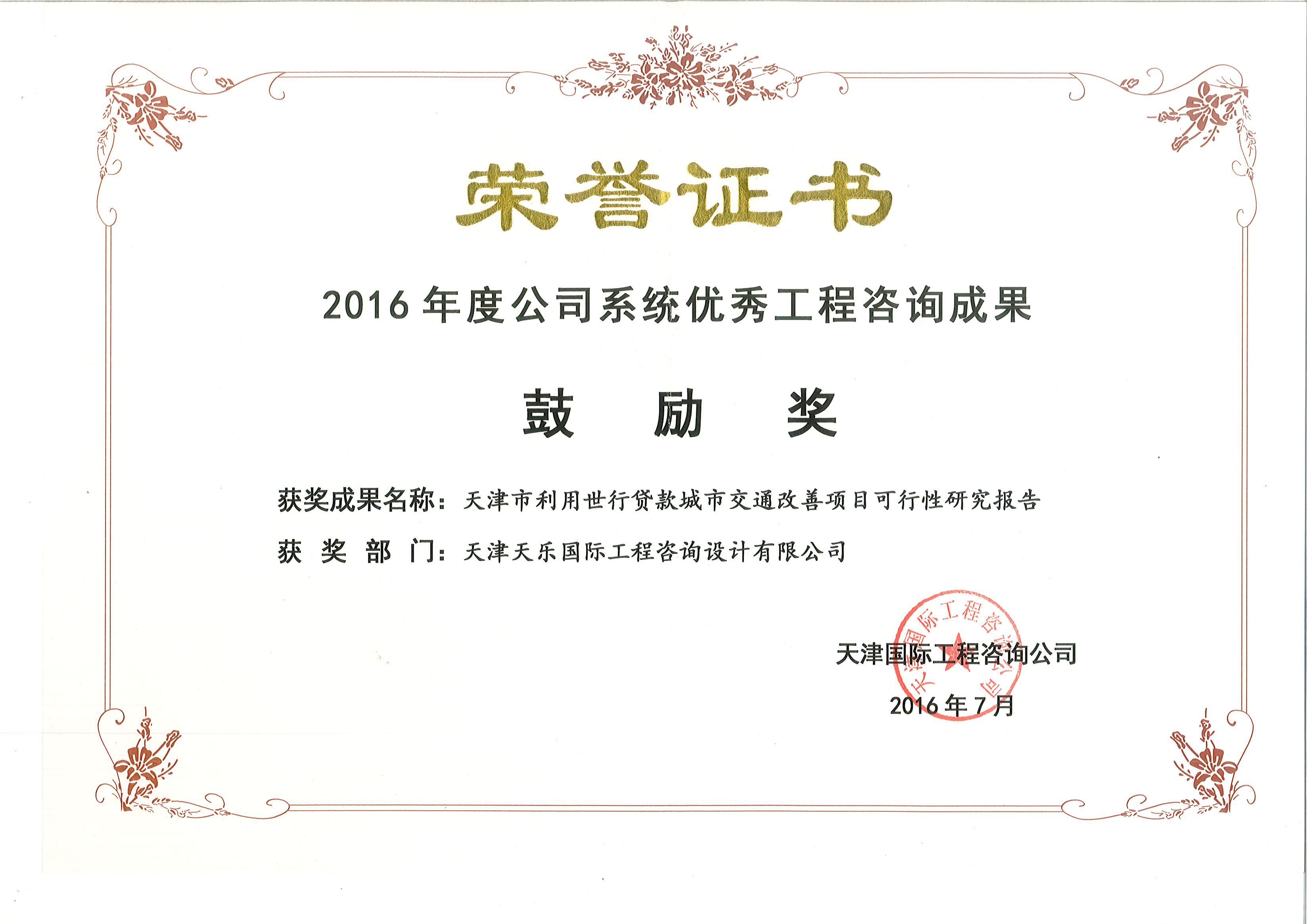 | 公司系統優(yōu)秀工程咨詢(xún)成果鼓勵獎