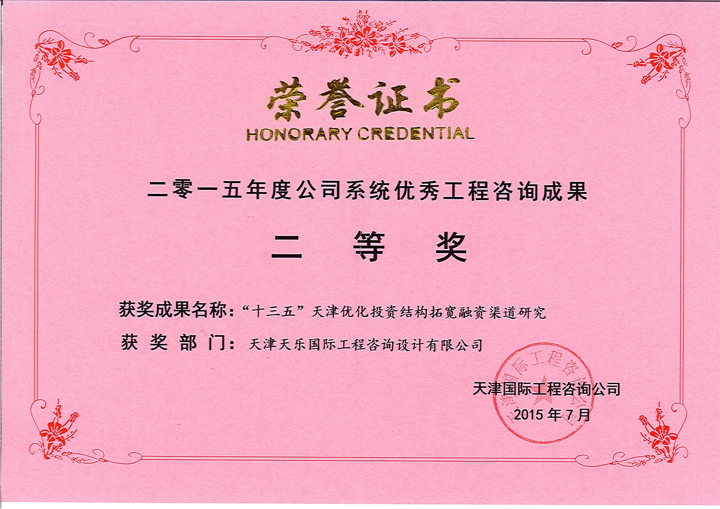 | 公司系統優(yōu)秀工程咨詢(xún)成果二等獎