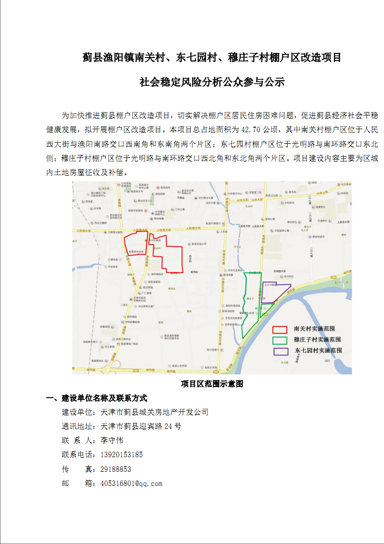 薊縣漁陽(yáng)鎮南關(guān)村、東七園村、穆莊子村棚戶(hù)區改造項目社會(huì )穩定風(fēng)險分析