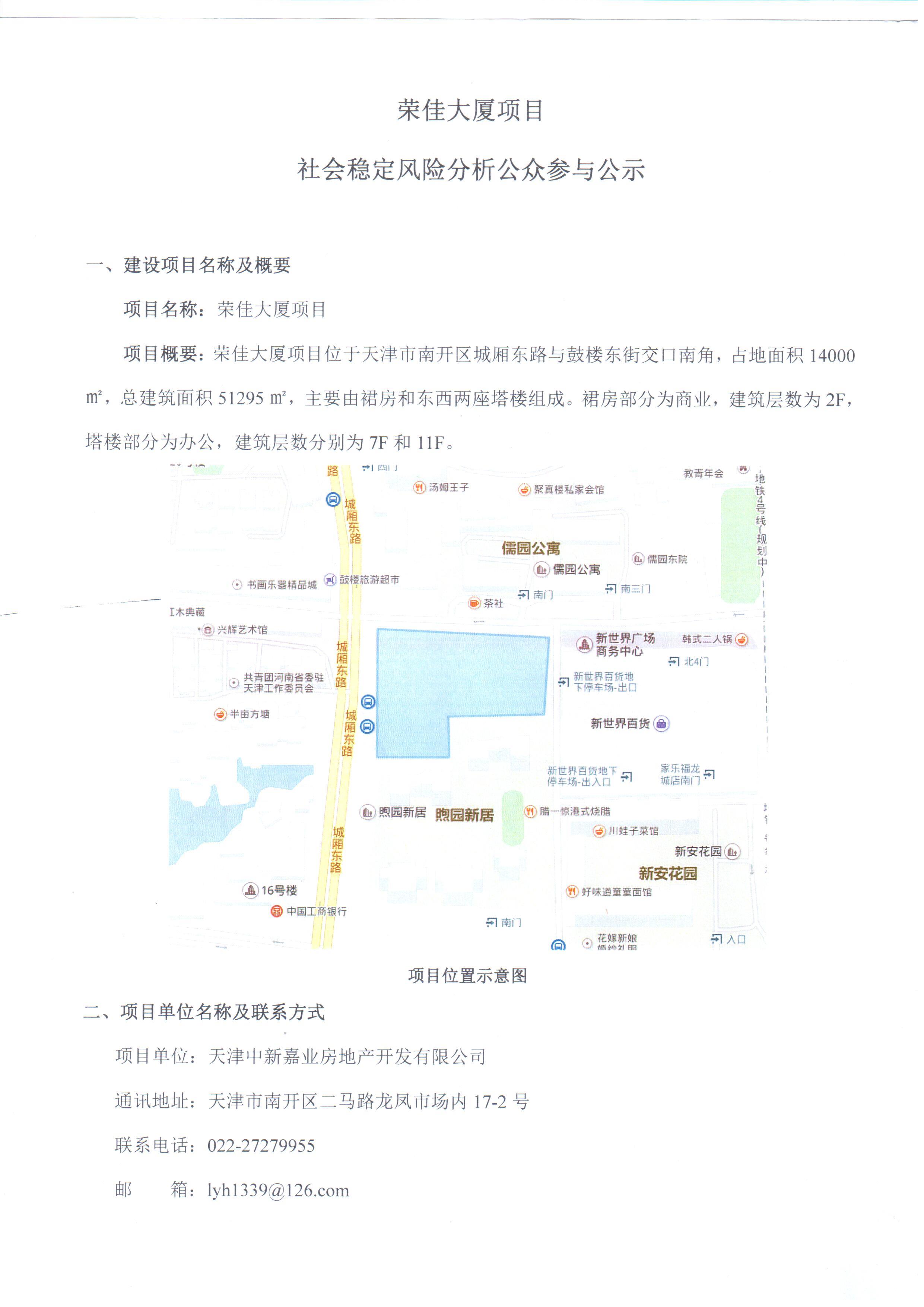 榮佳大廈項目社會(huì )穩定風(fēng)險分析公眾參與公示