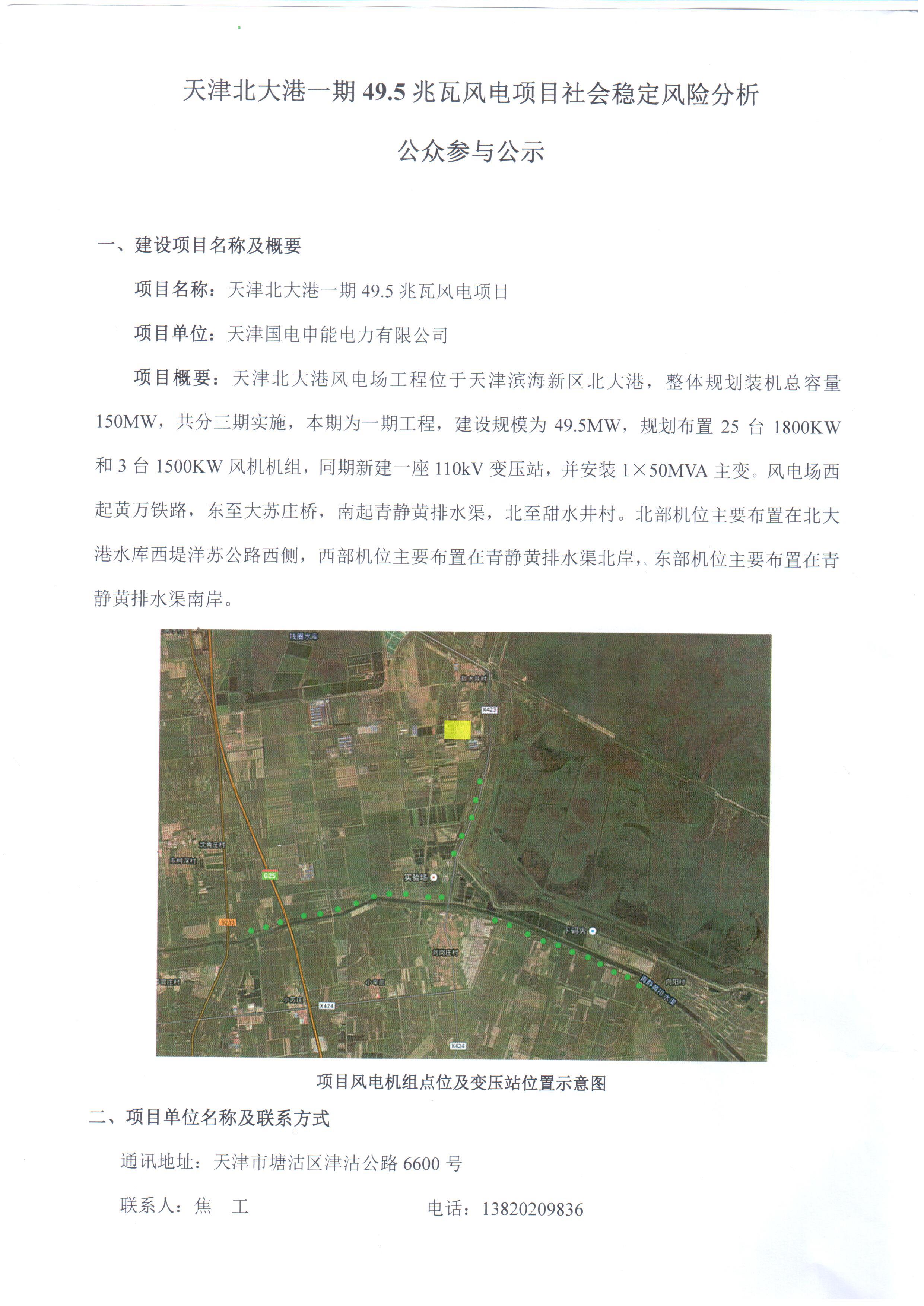 天津北大港一期49.5兆瓦風(fēng)電項目社會(huì )穩定風(fēng)險分析