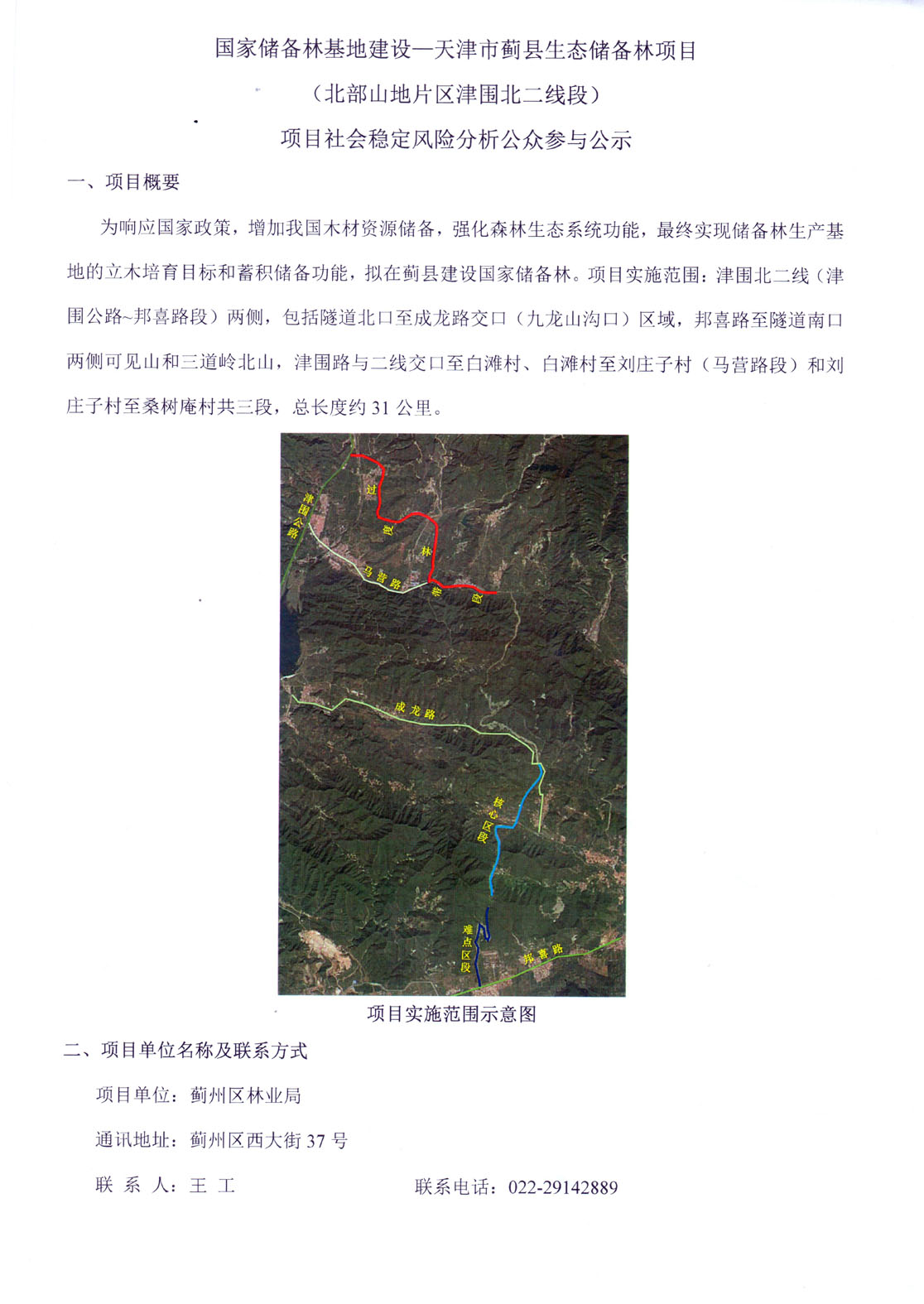 國家儲備林基地建設—天津市薊縣生態(tài)儲備林項目(北部山地片區津圍北二線(xiàn)段)項目社會(huì )穩定風(fēng)險分析