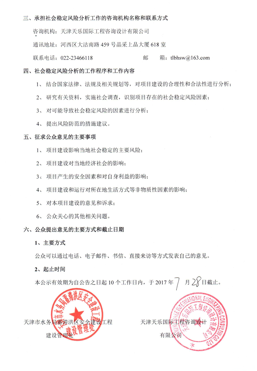 天津市東淀和文安洼蓄滯洪區工程與安全建設項目社會(huì )穩定風(fēng)險分析
