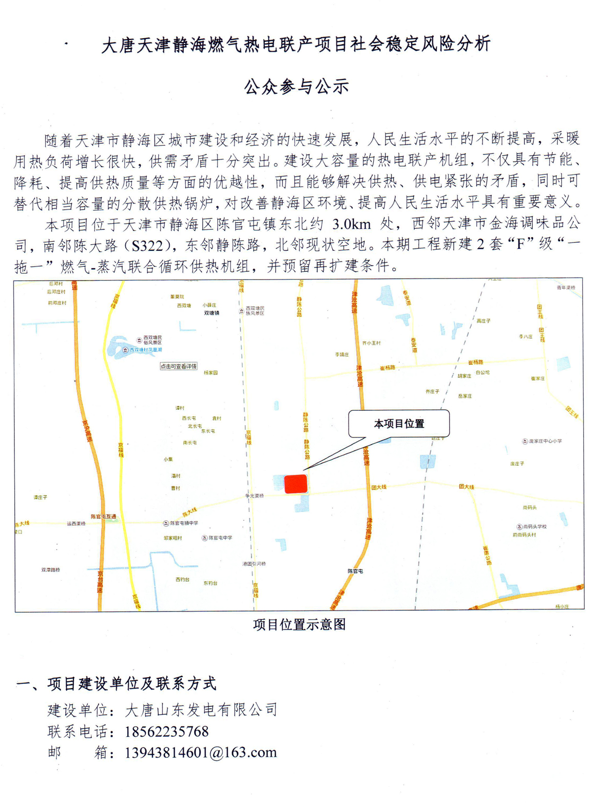 大唐天津靜海燃氣熱電聯(lián)產(chǎn)項目社會(huì )穩定風(fēng)險分析