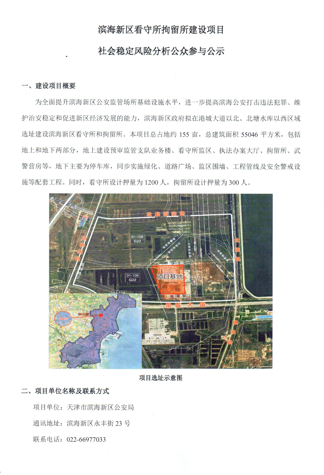 濱海新區看守所拘留所建設項目社會(huì )穩定風(fēng)險分析