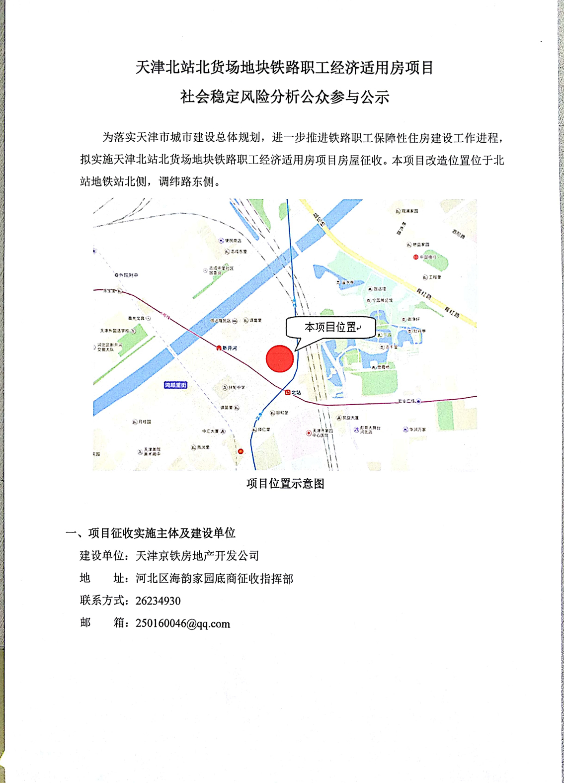天津北站北貨場(chǎng)地塊鐵路職工經(jīng)濟適用房項目社會(huì )穩定風(fēng)險分析