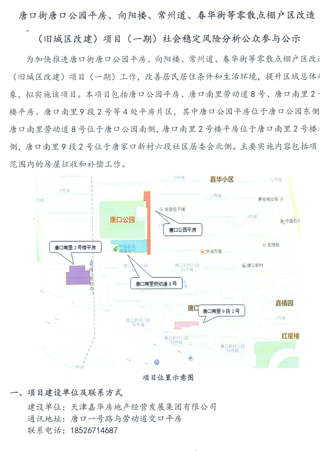 唐口街唐口公園平房、向陽(yáng)樓、常州道、春華街等零散點(diǎn)棚戶(hù)區改造(舊城區改建)項目一期社會(huì )穩定風(fēng)險分析