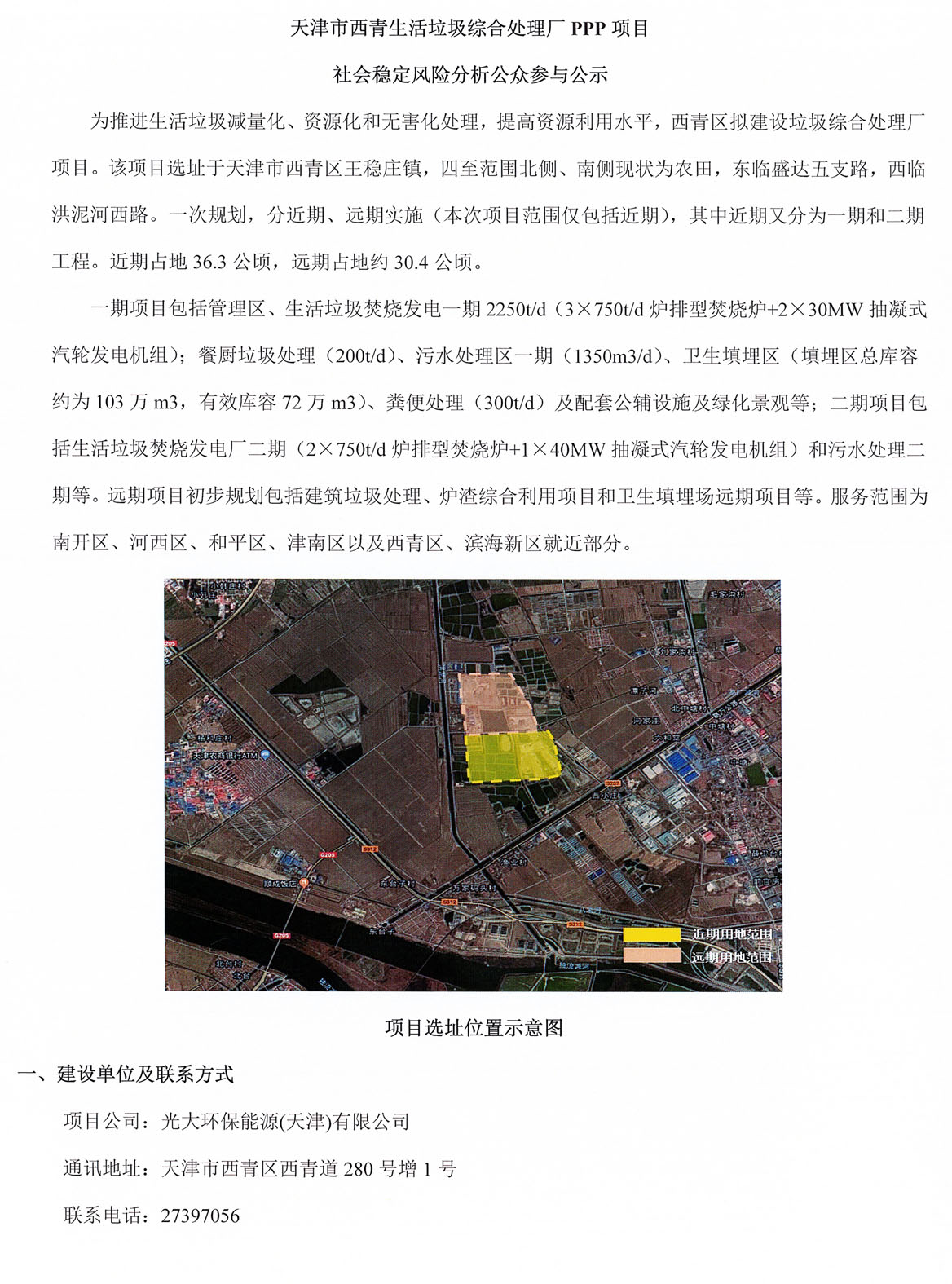 天津市西青生活垃圾綜合處理廠(chǎng)PPP項目社會(huì )穩定風(fēng)險分析