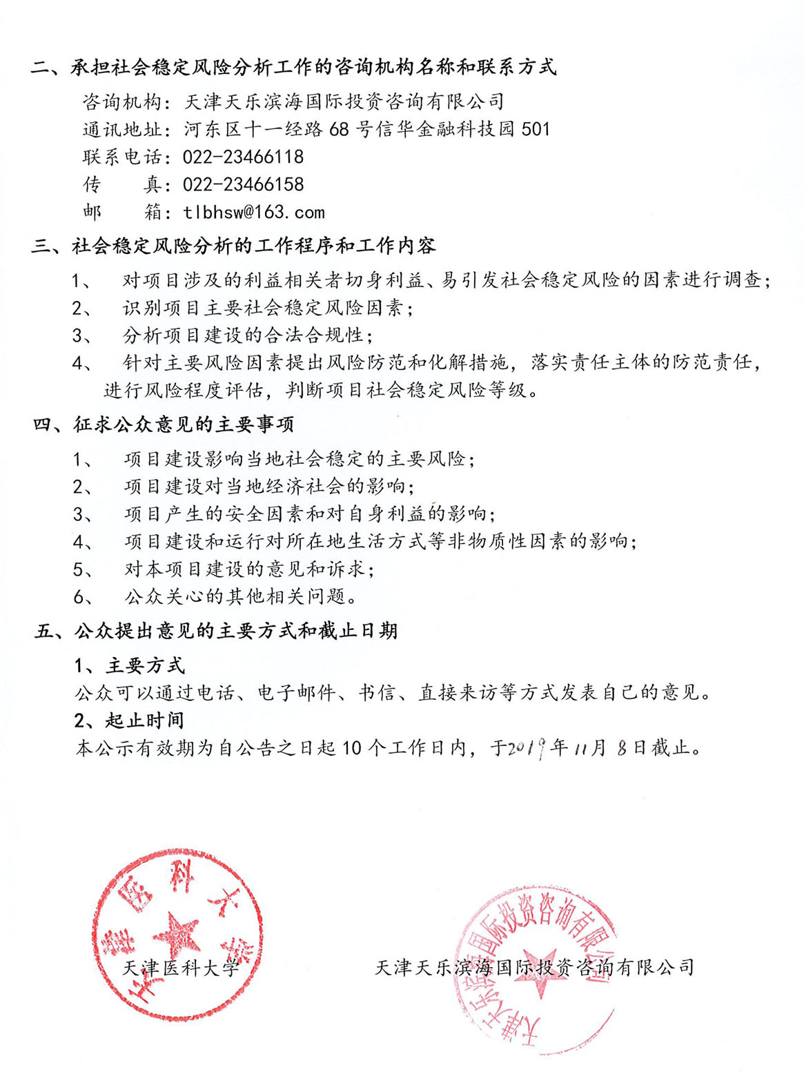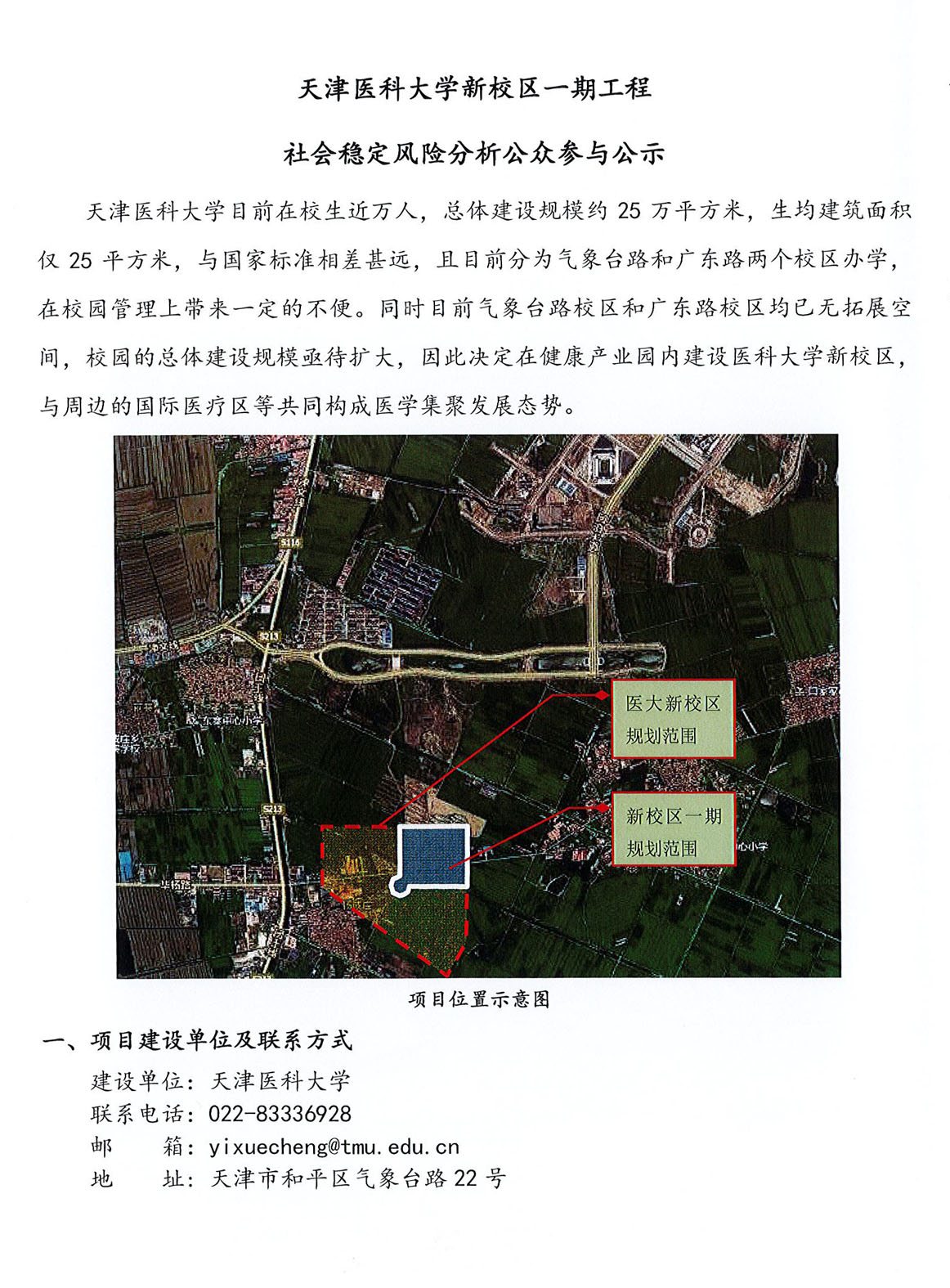 天津醫科大學(xué)新校區一期工程社會(huì )穩定風(fēng)險分析