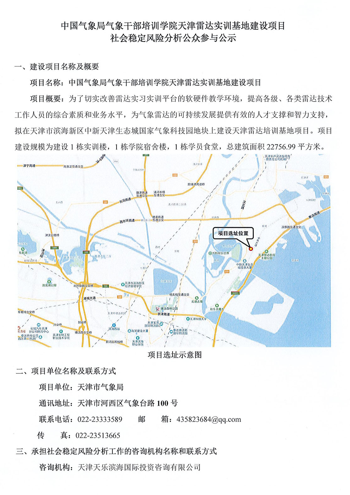 中國氣象局氣象干部培訓學(xué)院天津雷達實(shí)訓基地建設項目社會(huì )穩定風(fēng)險分析