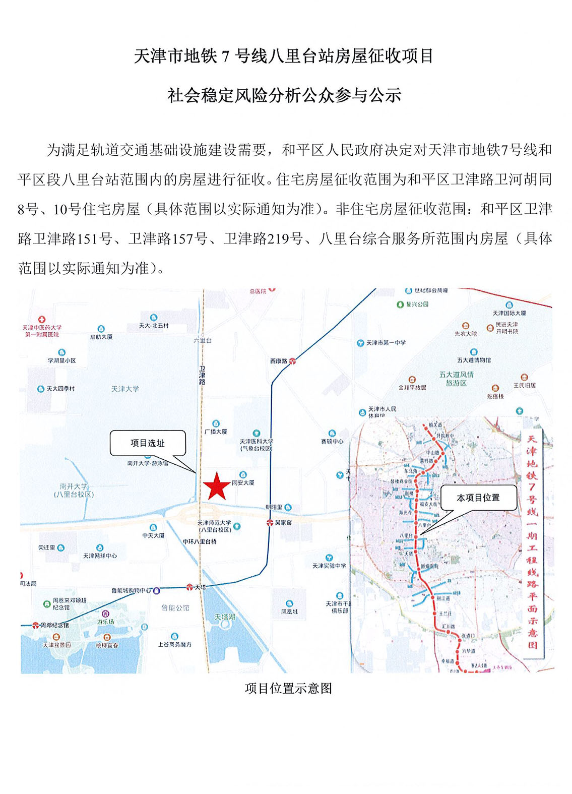 天津市地鐵7號線(xiàn)八里臺站房屋征收項目社會(huì )穩定風(fēng)險分析