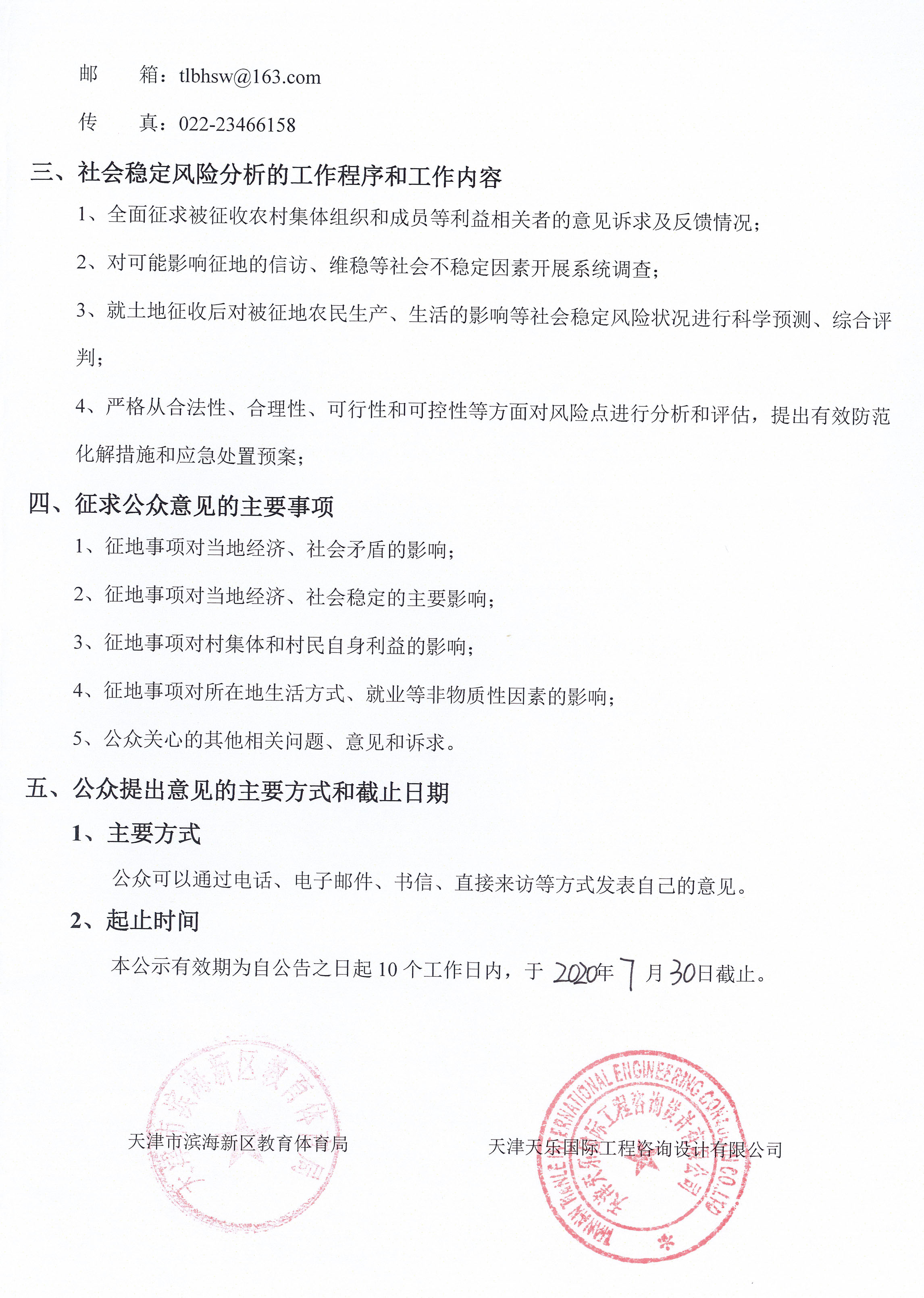 漢沽楊家泊鎮中心幼兒園項目征地社會(huì )穩定風(fēng)險分析