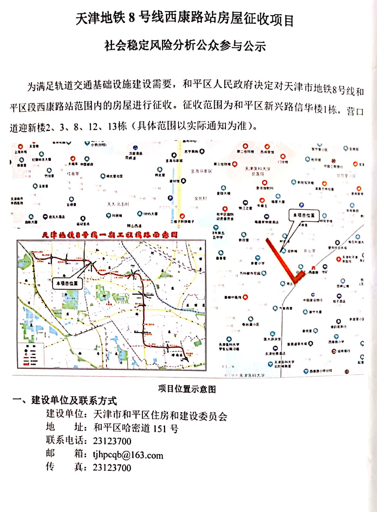 天津地鐵8號線(xiàn)西康路站房屋征收項目社會(huì )穩定風(fēng)險分析