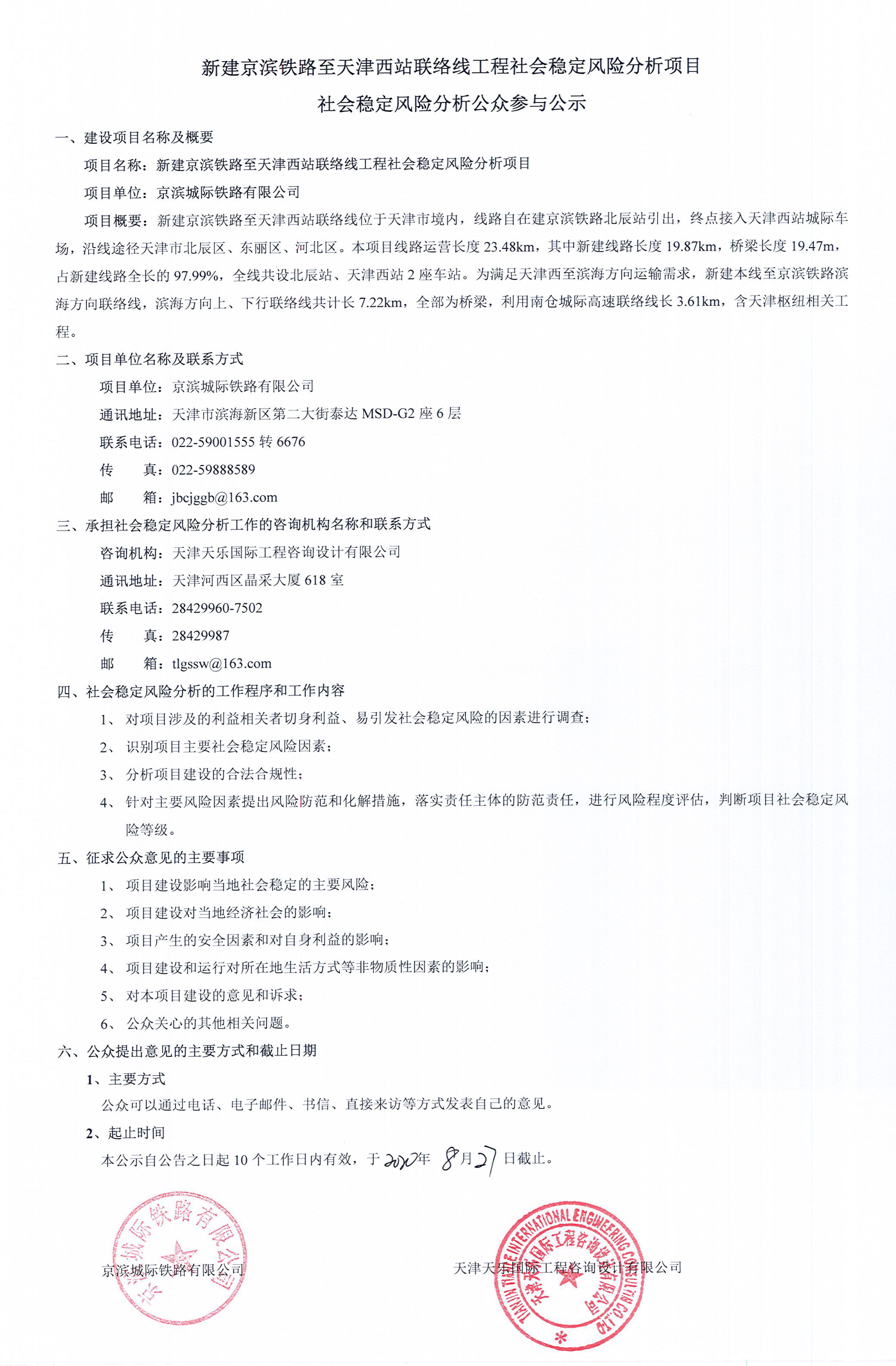 新建京濱鐵路至天津西站聯(lián)絡(luò )線(xiàn)工程社會(huì )穩定風(fēng)險分析
