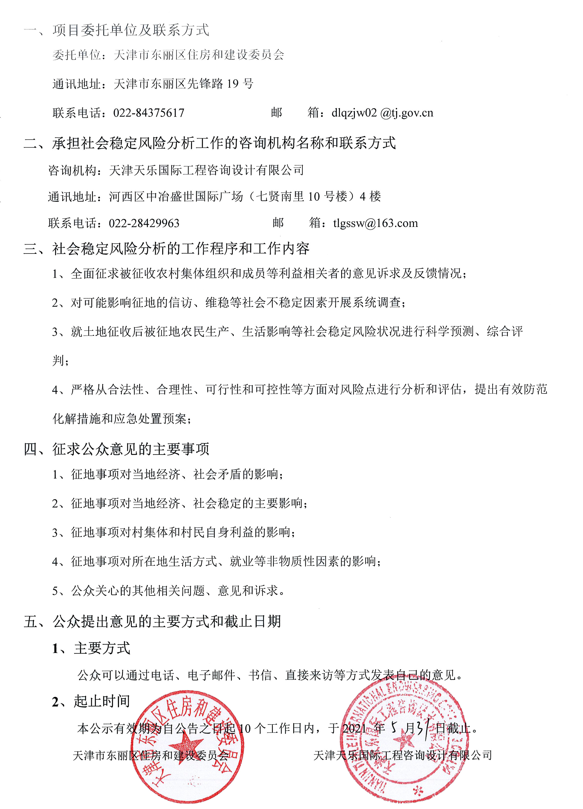 天津地鐵11號線(xiàn)一期工程東麗區外環(huán)輔道站等四個(gè)車(chē)站用地項目征地社會(huì )穩定風(fēng)險評估