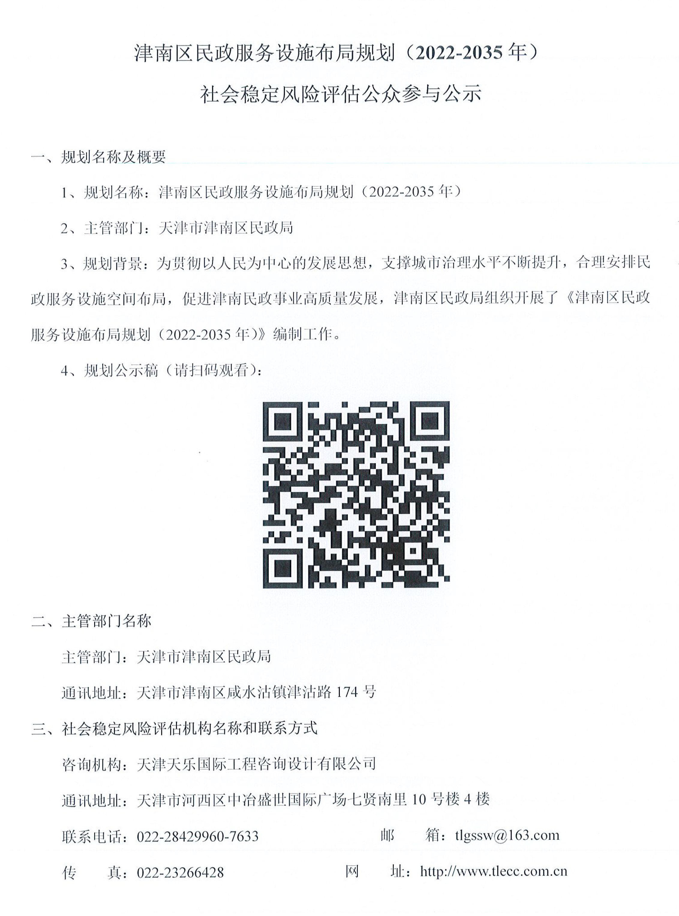 津南區民政服務(wù)設施布局規劃(2022-2035年)社會(huì )穩定風(fēng)險評估