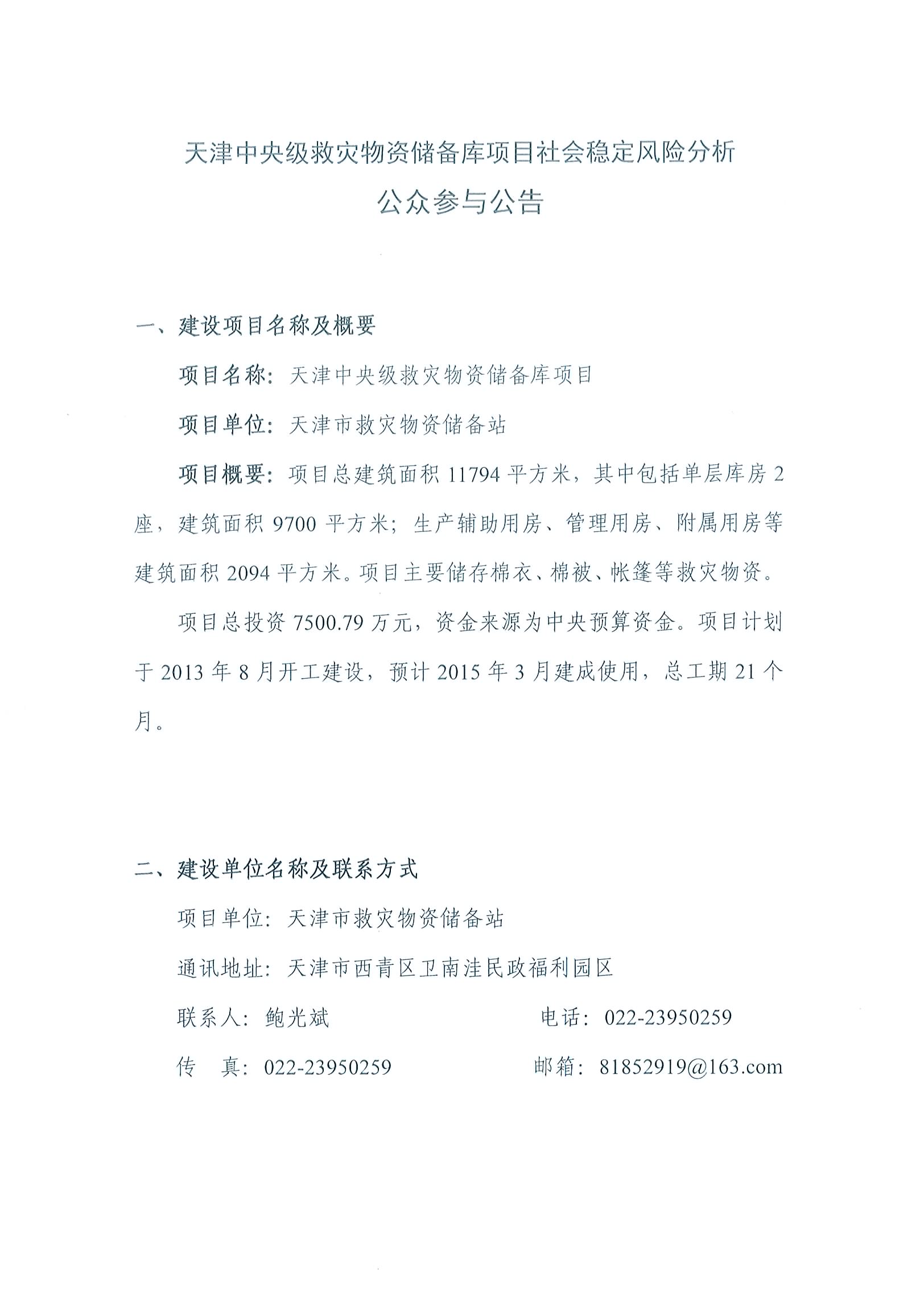 天津中央級救災物資儲備庫項目社會(huì )穩定風(fēng)險分析