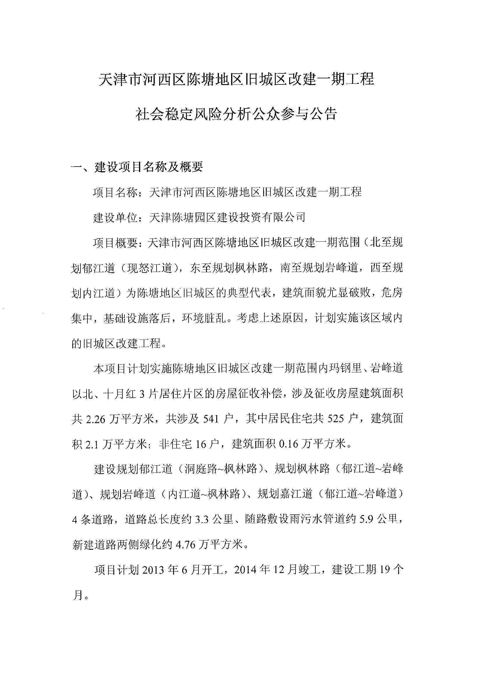 天津市河西區陳塘地區舊城區改建一期工程社會(huì )穩定風(fēng)險分析