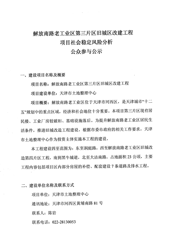 解放南路老工業(yè)區第三片區舊城區改建工程項目社會(huì )穩定風(fēng)險分析