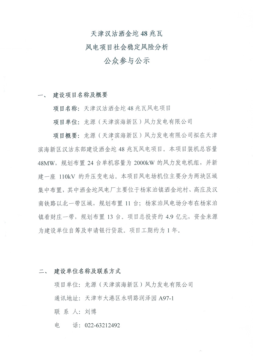 天津漢沽灑金坨48兆瓦風(fēng)電項目社會(huì )穩定風(fēng)險分析