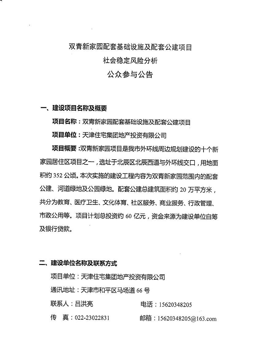 雙青新家園配套基礎設施及配套公建項目社會(huì )穩定風(fēng)險分析