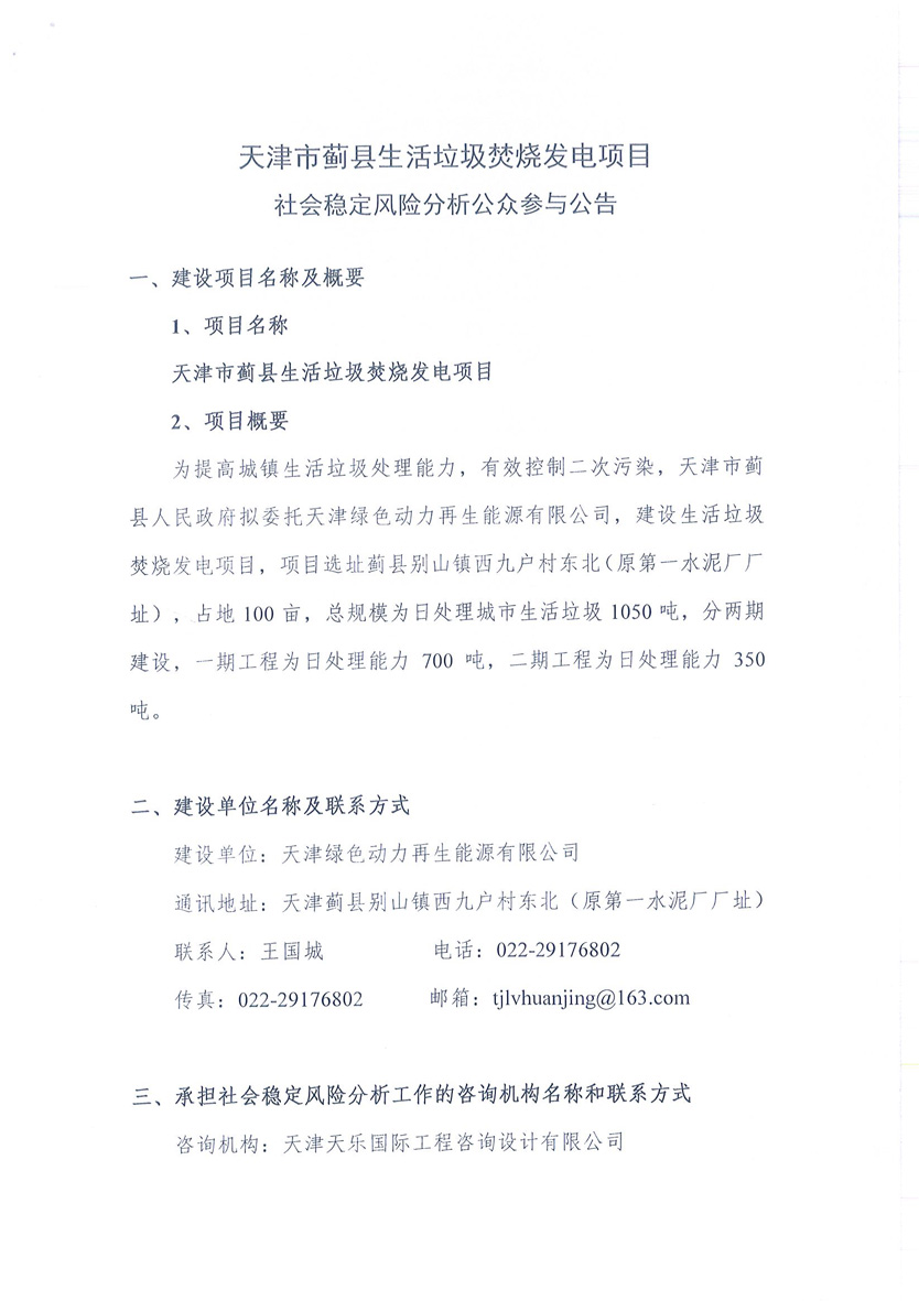 天津市薊縣生活垃圾焚燒發(fā)電項目社會(huì )穩定風(fēng)險分析