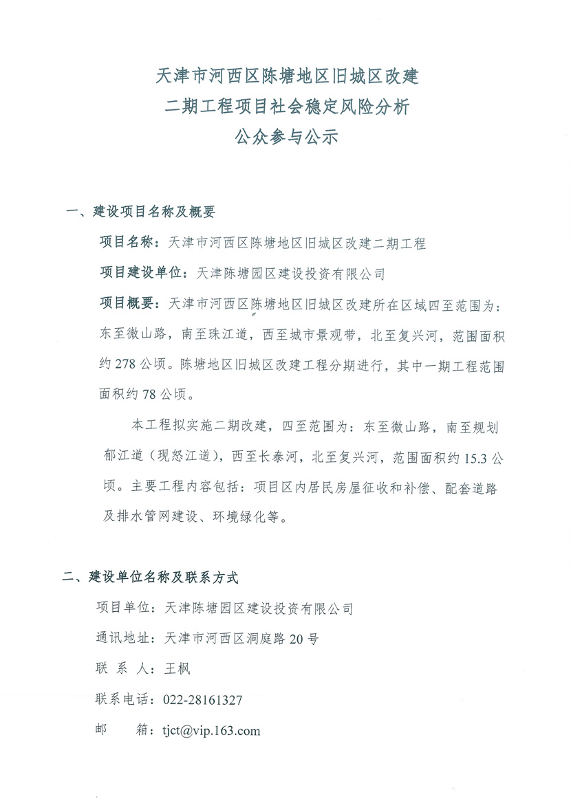 天津市河西區陳塘地區舊城區改建二期工程項目社會(huì )穩定風(fēng)險分析