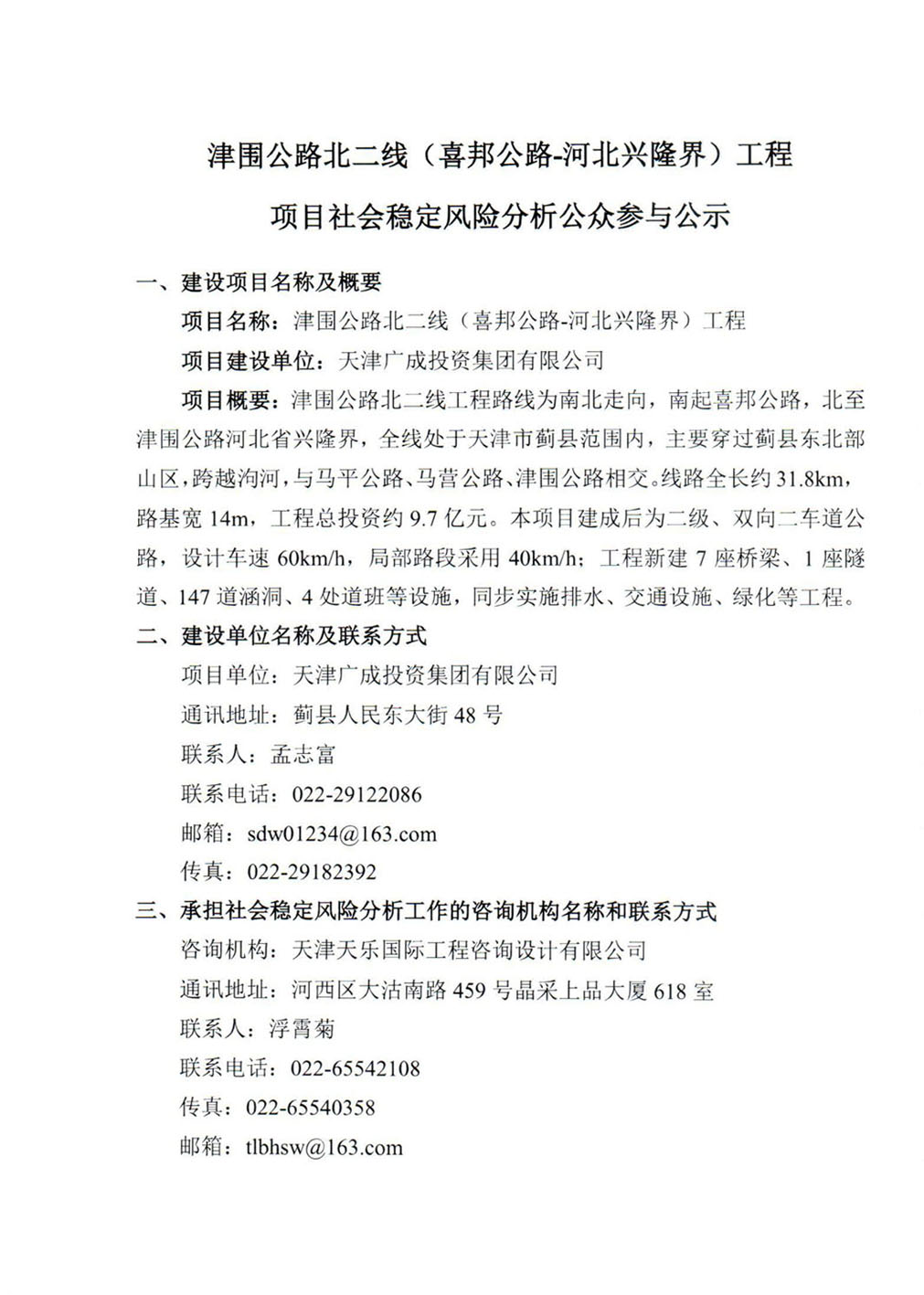 津圍公路北二線(xiàn)(喜邦公路—河北興隆界)工程項目社會(huì )穩定風(fēng)險分析