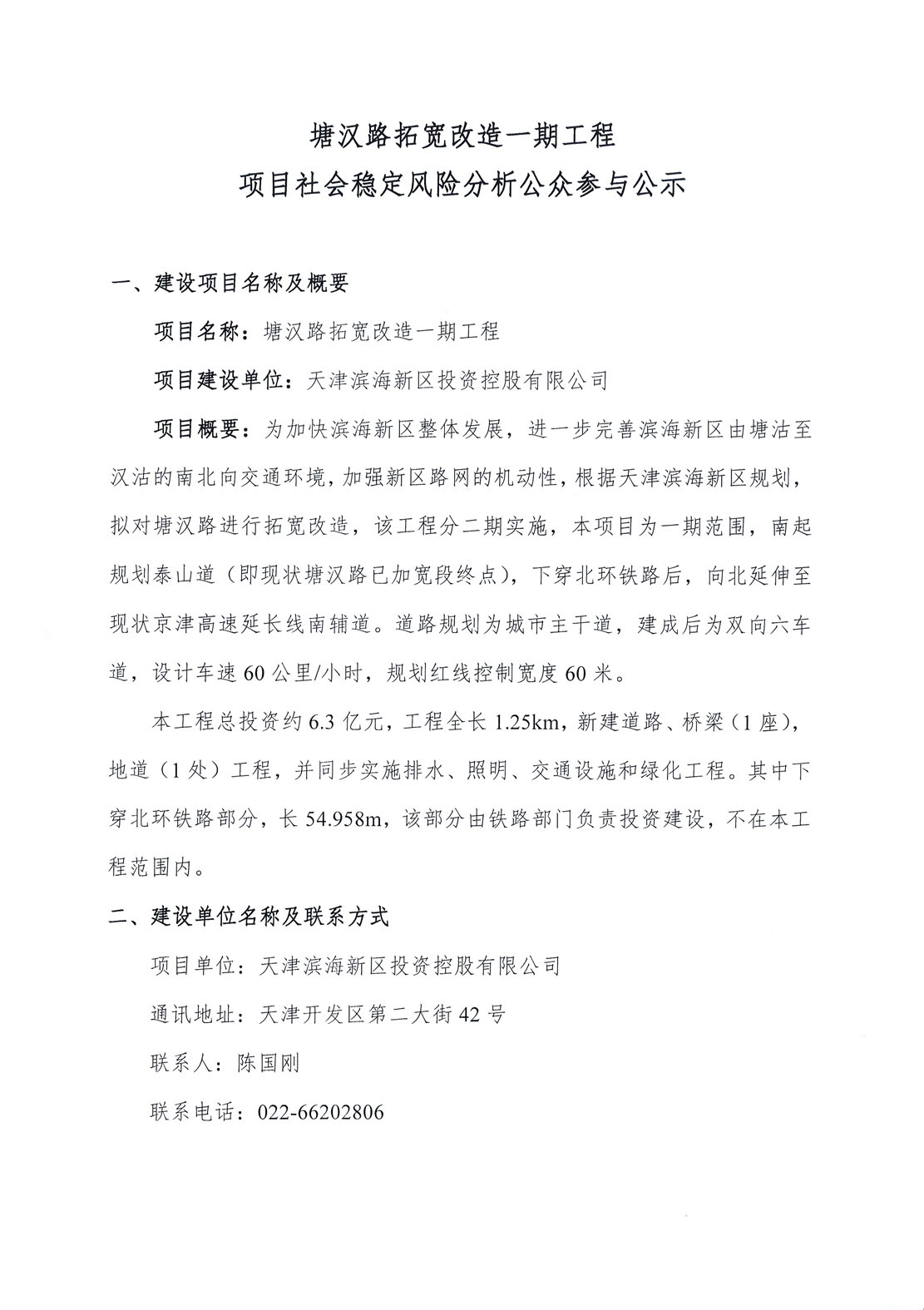 塘漢路拓寬改造一期工程項目社會(huì )穩定風(fēng)險分析