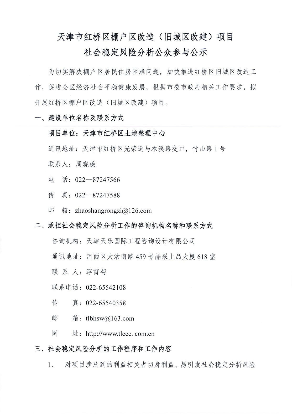 天津市紅橋區棚戶(hù)區改造(舊城區改建)項目社會(huì )穩定風(fēng)險分析