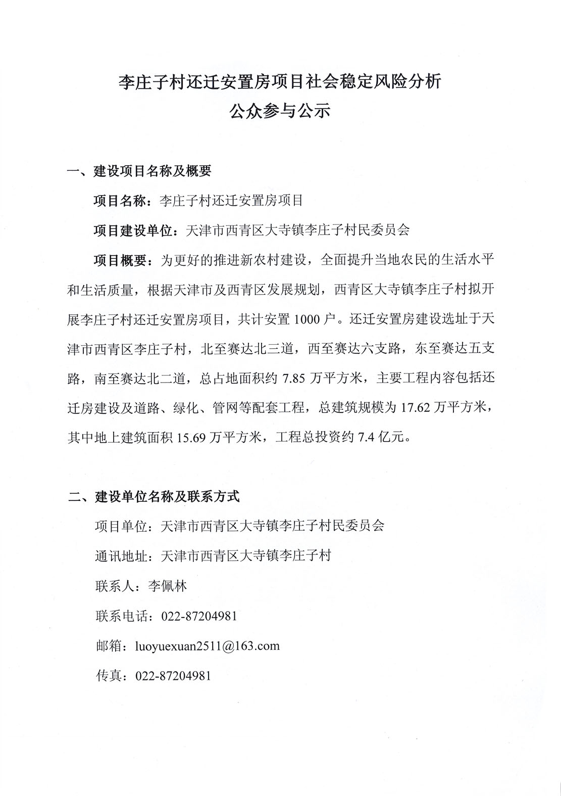 李莊子村還遷安置房項目社會(huì )穩定風(fēng)險分析