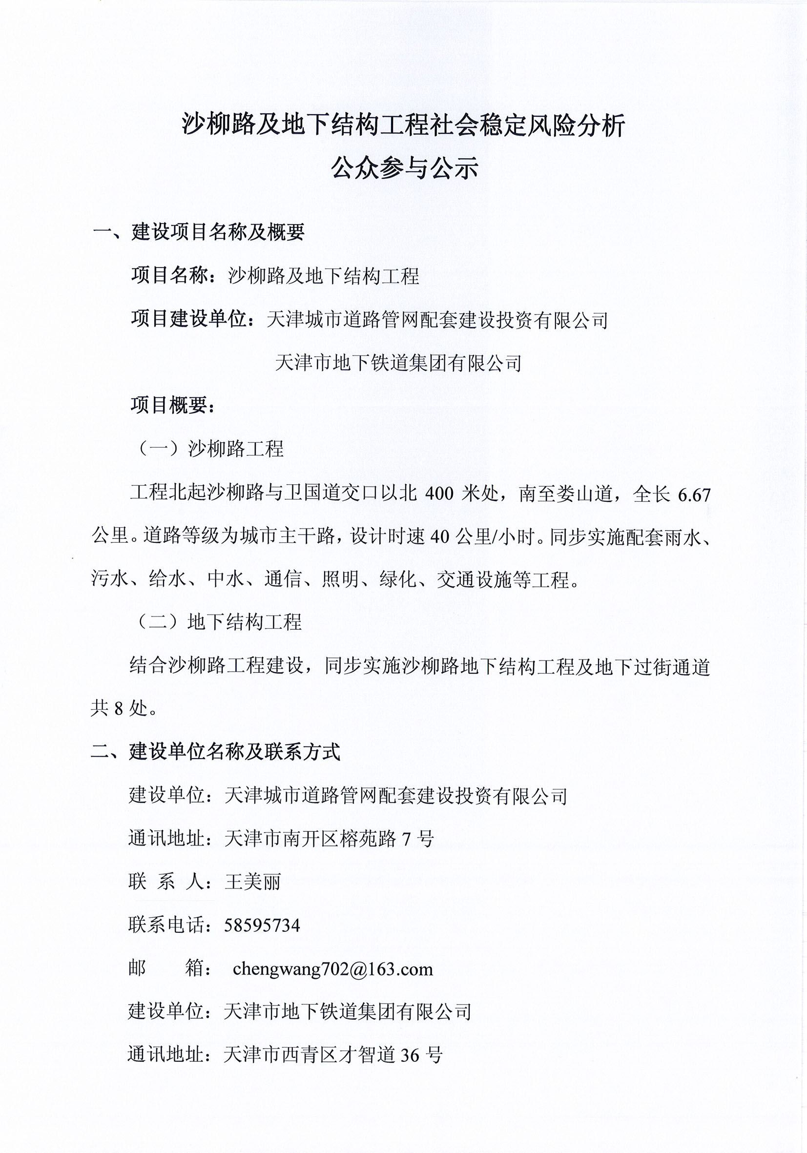 沙柳路及地下結構工程社會(huì )穩定風(fēng)險分析