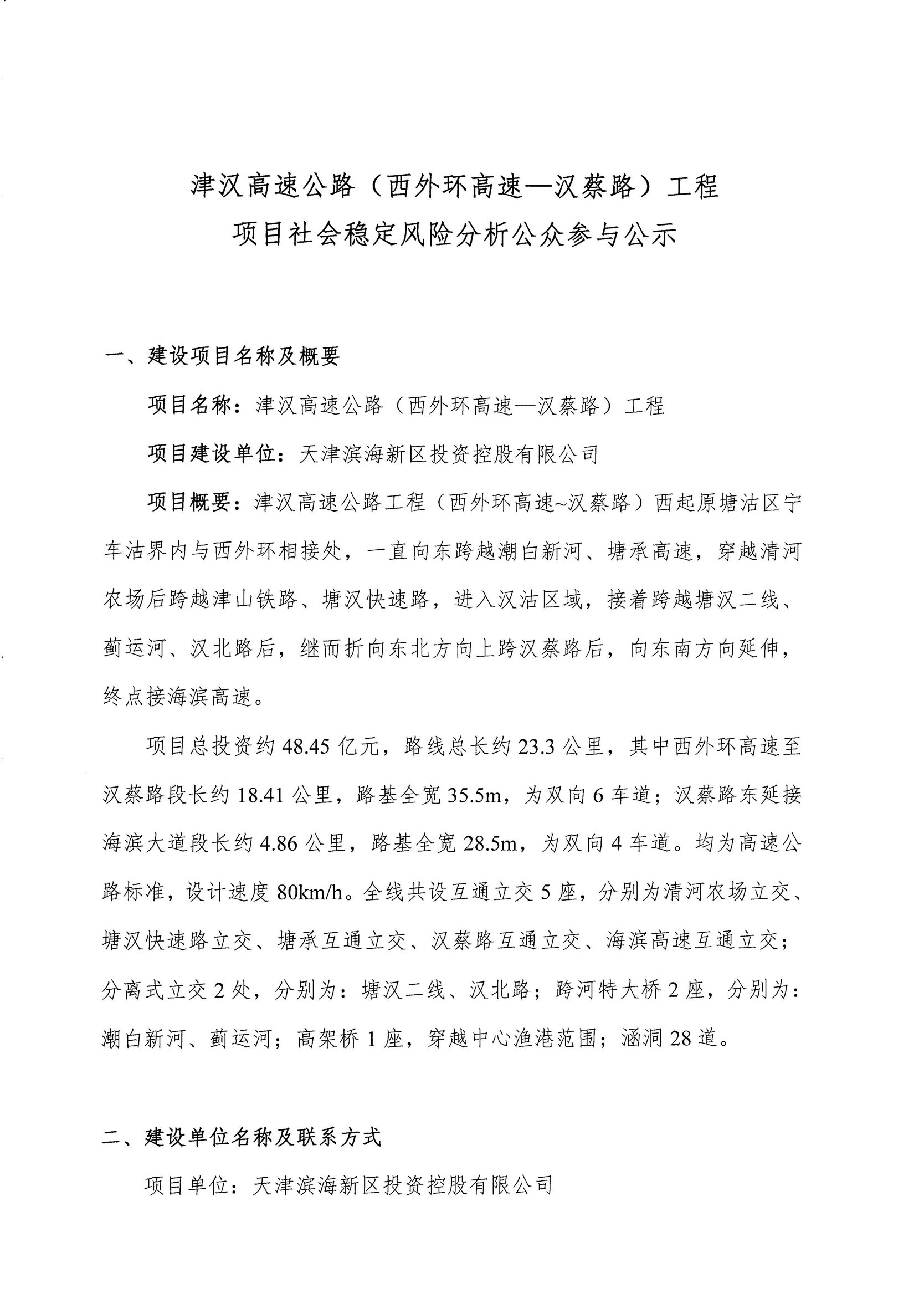 津漢高速公路(西外環(huán)高速—漢蔡路)工程項目社會(huì )穩定風(fēng)險分析