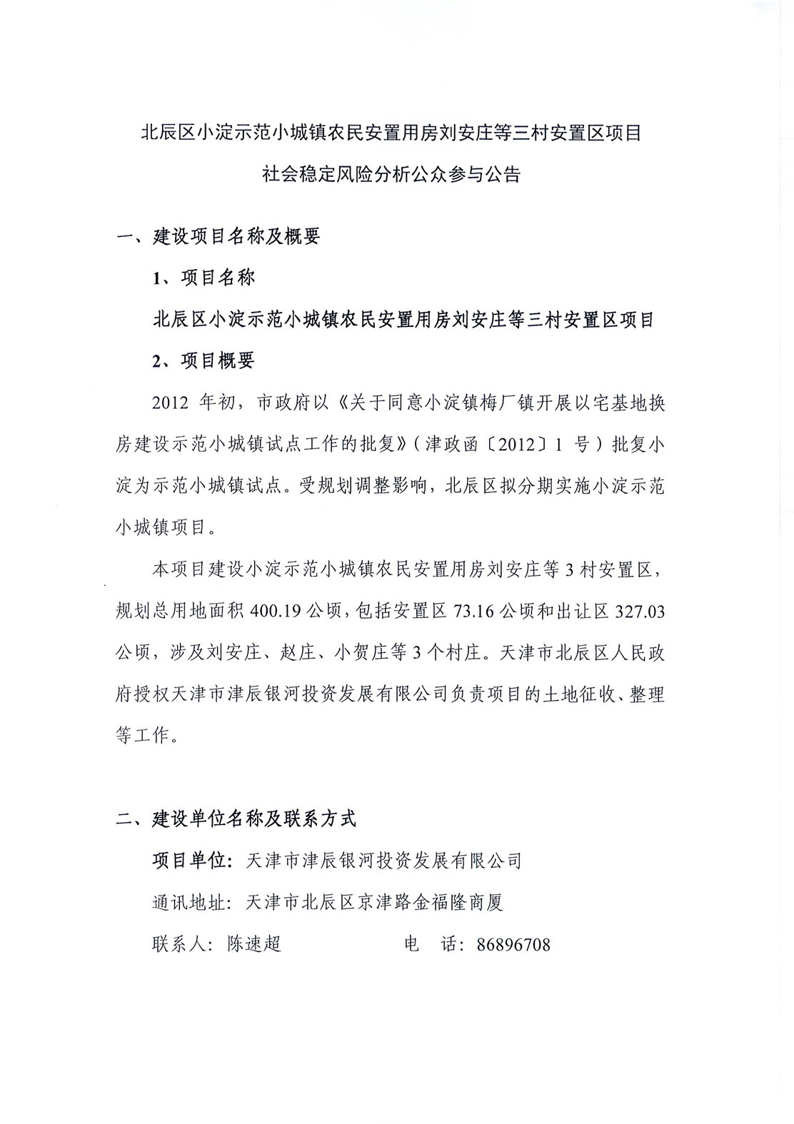 北辰區小淀示范小城鎮農民安置用房劉安莊等三村安置區項目
