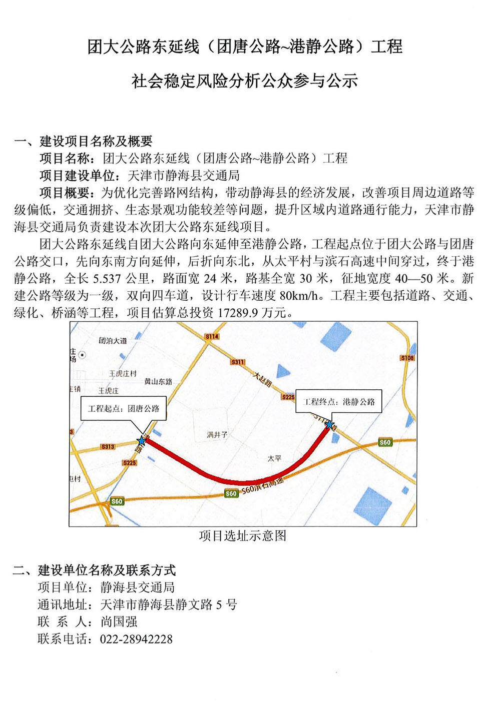 團大公路東延線(xiàn)(團唐公路-港靜公路)工程社會(huì )穩定風(fēng)險分析
