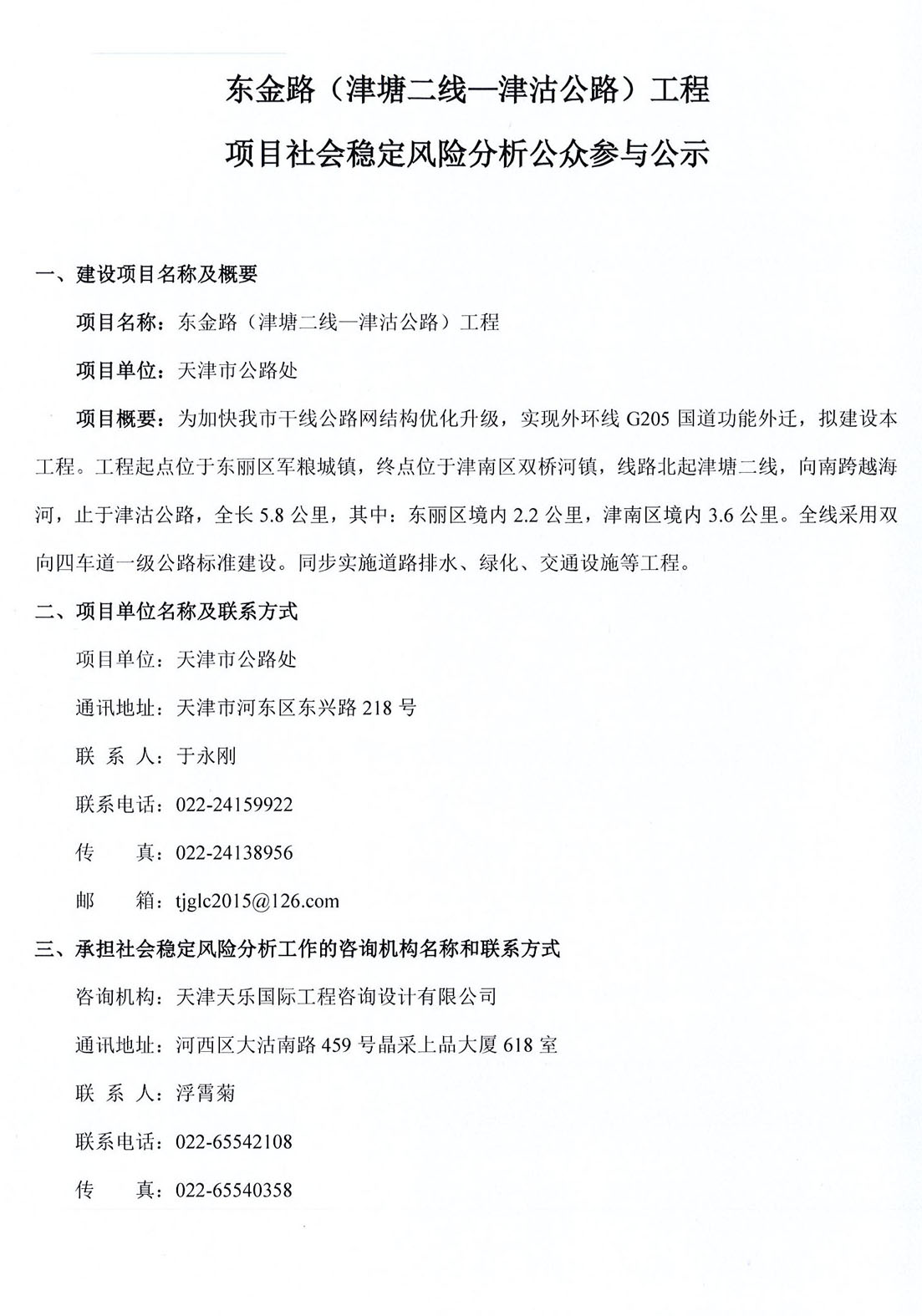 東金路(津塘二線(xiàn)—津沽公路)工程項目社會(huì )穩定風(fēng)險分析