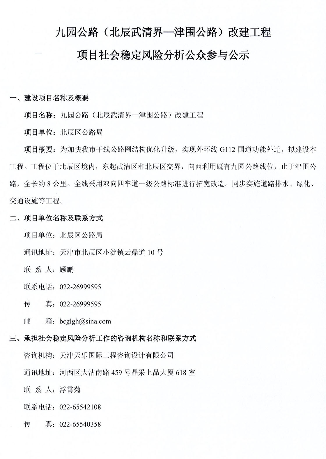 九園公路(北辰武清界—津圍公路)改建工程項目社會(huì )穩定風(fēng)險分析