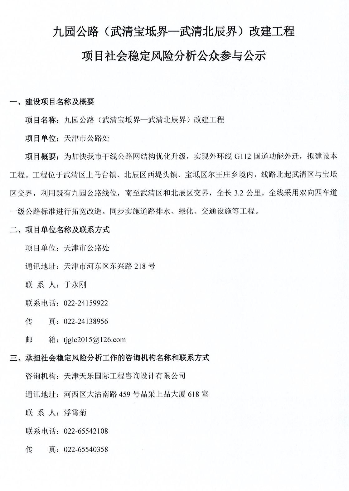 九園公路(武清寶坻界—武清北辰界)改建工程項目社會(huì )穩定風(fēng)險分析