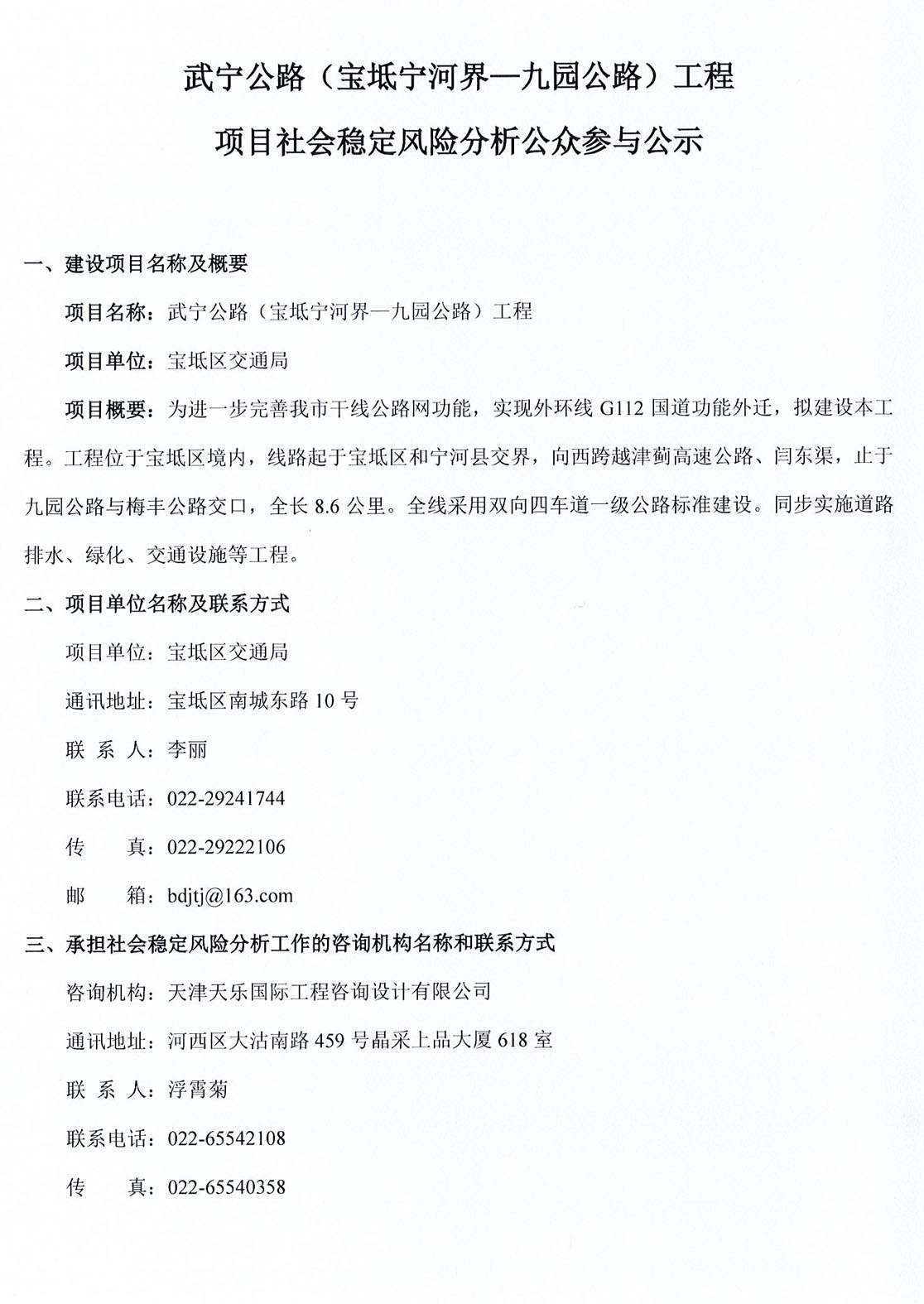 武寧公路(寶坻寧河界—九園公路)工程項目社會(huì )穩定風(fēng)險分析