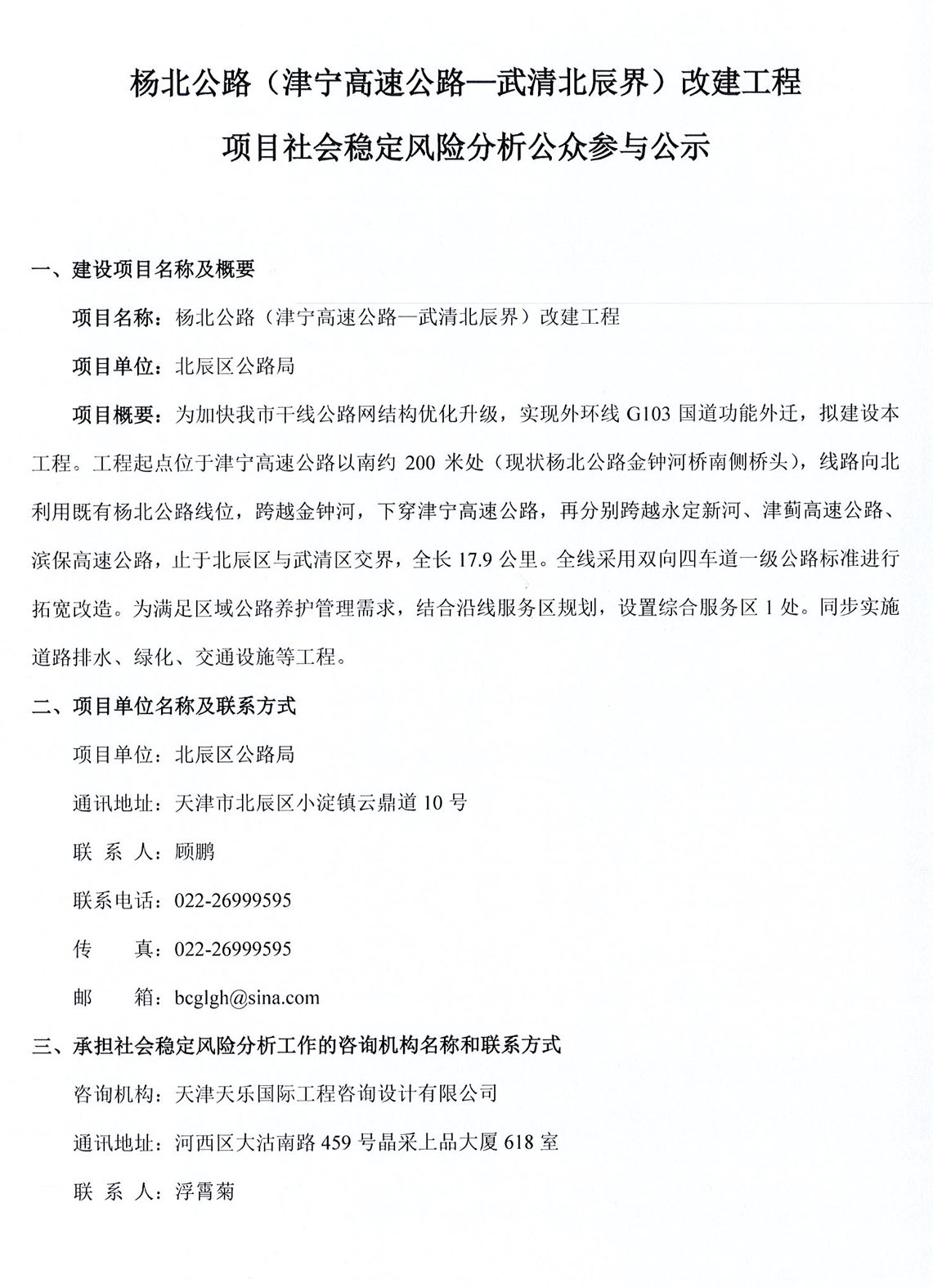 楊北公路(津寧高速公路—武清北辰界)改建工程項目社會(huì )穩定分析