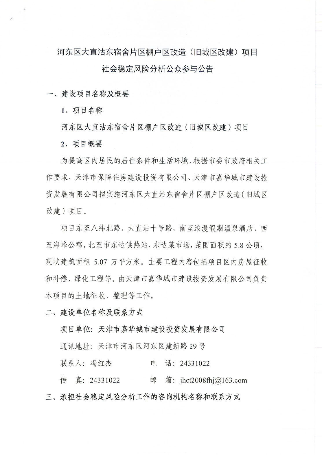 河東區大直沽東宿舍片區棚戶(hù)區改造(舊城區改建)項目社會(huì )穩定風(fēng)險分析