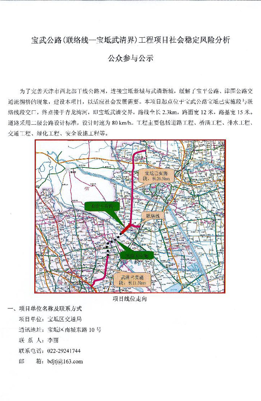 寶武公路(聯(lián)絡(luò )線(xiàn)——寶坻武清界)工程項目社會(huì )穩定風(fēng)險分析